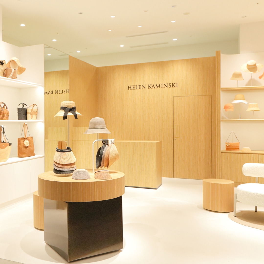アースカラーを基調に、素材の質感を活かした温かみのある店内では、ラフィアハットをはじめ、バッグやフットウェアなど幅広いコレクションをご覧いただけます。